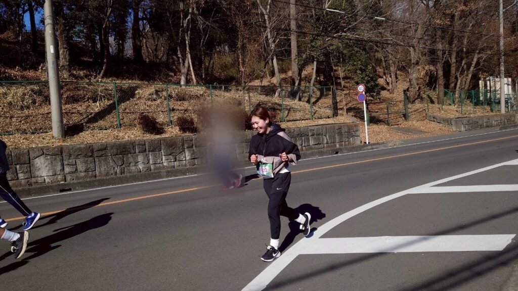 上野さんはというと、レース中も変わらぬ笑顔。沿道の声援に応えながら、軽快なリズムでコースを進みます。苦しいはずの場面でも、表情には前向きさがにじみ、見ている側まで元気をもらえるような快走でした。