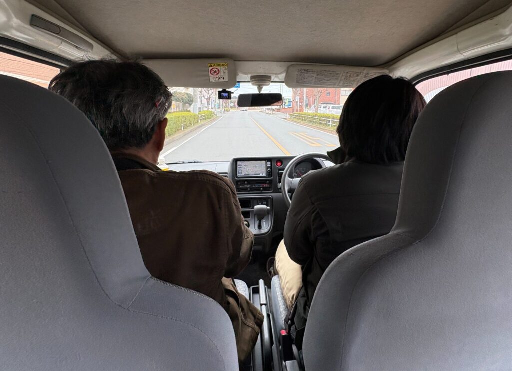 現場へ向かう車内では、小林部長と、昨年12月に入社した石田さんとの業務上のコミュニケーションが自然に始まります。