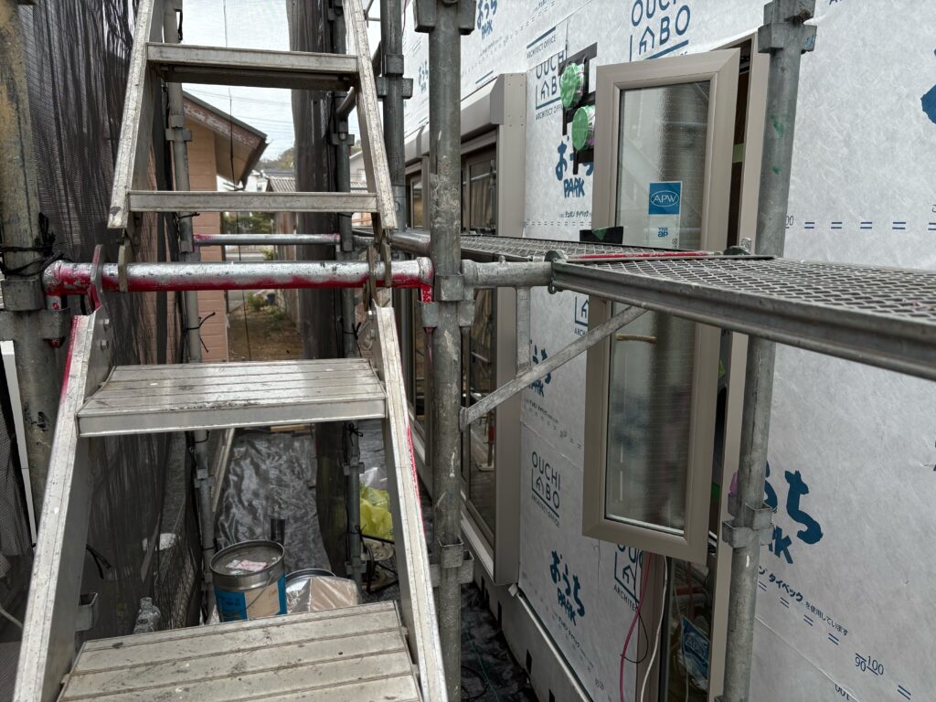 自宅の新築時を思い出しながら、足場の階段を上ってきました。