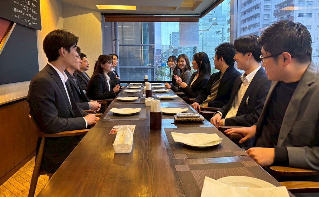 研修1日目と2日目の間には懇親会が開催され、新入社員・受け入れ側ともに食事を囲みながら交流を深めました。